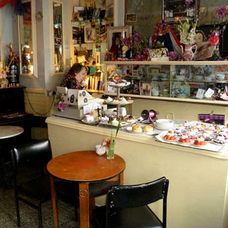 A Sheer Delight! A cute little cafe in Soho. Wonderfully retro and beautifully eccentric ( to get to the other part of the cafe, you have to leave the main area, back on to the street then enter the adjoining door!) Pastel colours, delicate fairy lights, flowers & chintzy tablecloths- the cafe is tiny- but great fun!